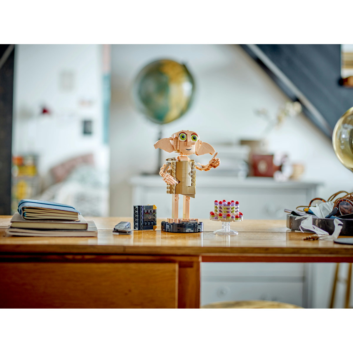 Încântă fanii Harry Potter™ cu primul model din cărămizi LEGO® al Spiriduşului de casă Dobby™. Figurina din cărămizi imediat recognoscibilă are capul articulat pentru diferite expresii, iar braţele şi degetele articulate îi permit lui Dobby să ţină accesoriile emblematice incluse. Setul include un model construibil detaliat al şosetei lui Harry Potter, cu jurnalul lui Tom Riddle, pe care Harry l-a folosit pentru a-l elibera pe Dobby, precum şi tortul +u201eplutitor+u201d al mătuşii Petunia pentru a inspira reconstituirea unor scene clasice.